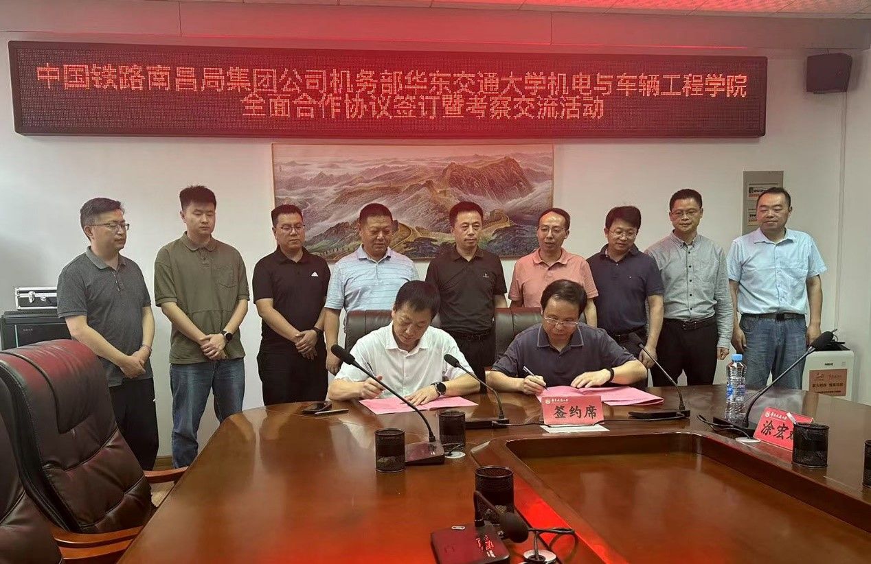 5月15日,中国铁路南昌局集团有限公司机务部与我院全面合作协议签订暨考察交流活动在校内成功举行。此次活动标志着双方在党建共建、科研攻关、人才培养等领域的合作迈入新阶段,为深化产教融合、推动铁路行业高质量发展注入新动能。
