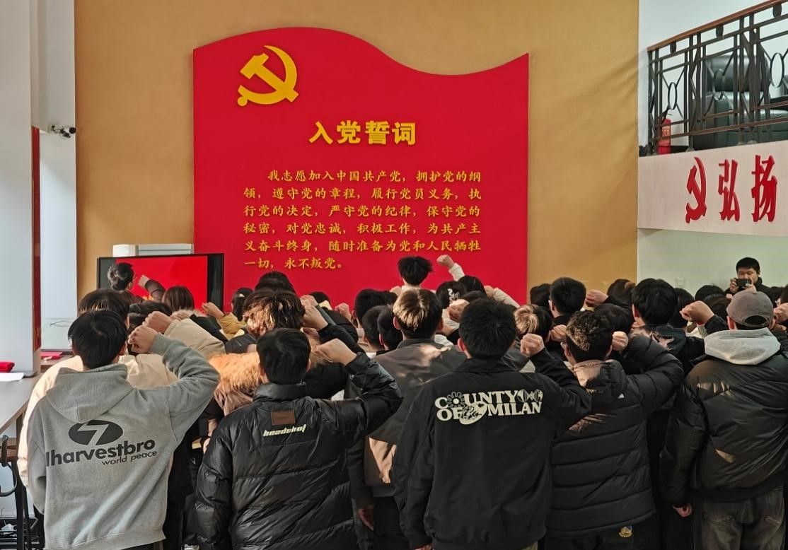 领誓人袁嘉豪带领全体预备党员庄严宣誓“我志愿加入中国共产党,拥护党的纲领,遵守党的章程……”誓言声声,铿锵有力,表达了新党员们对党的忠诚和信仰的坚定。