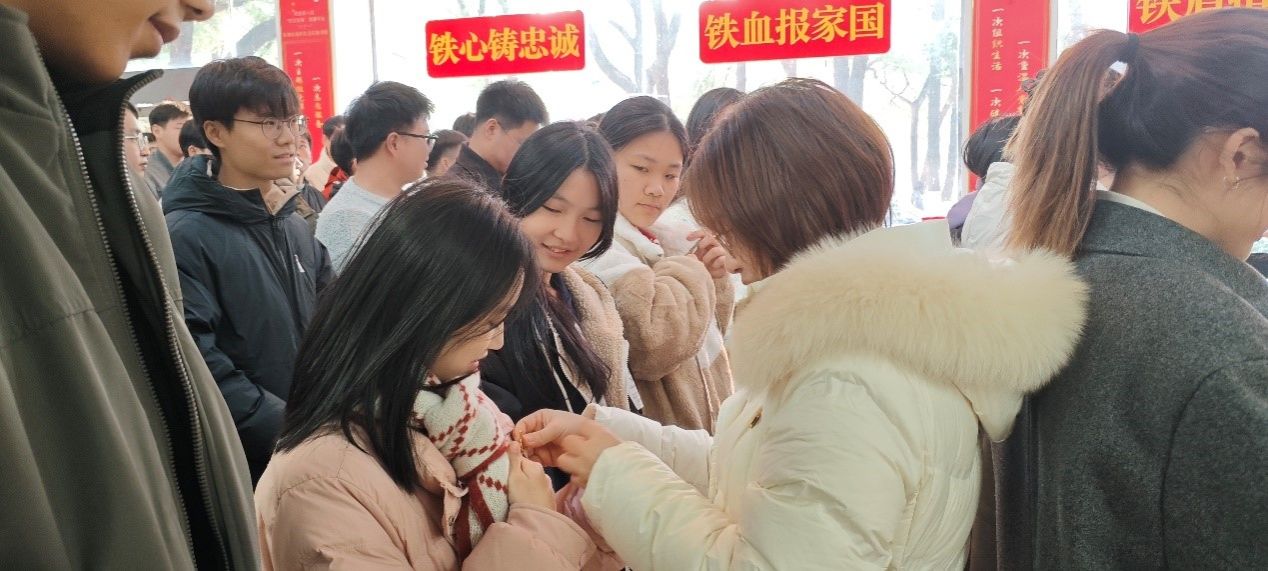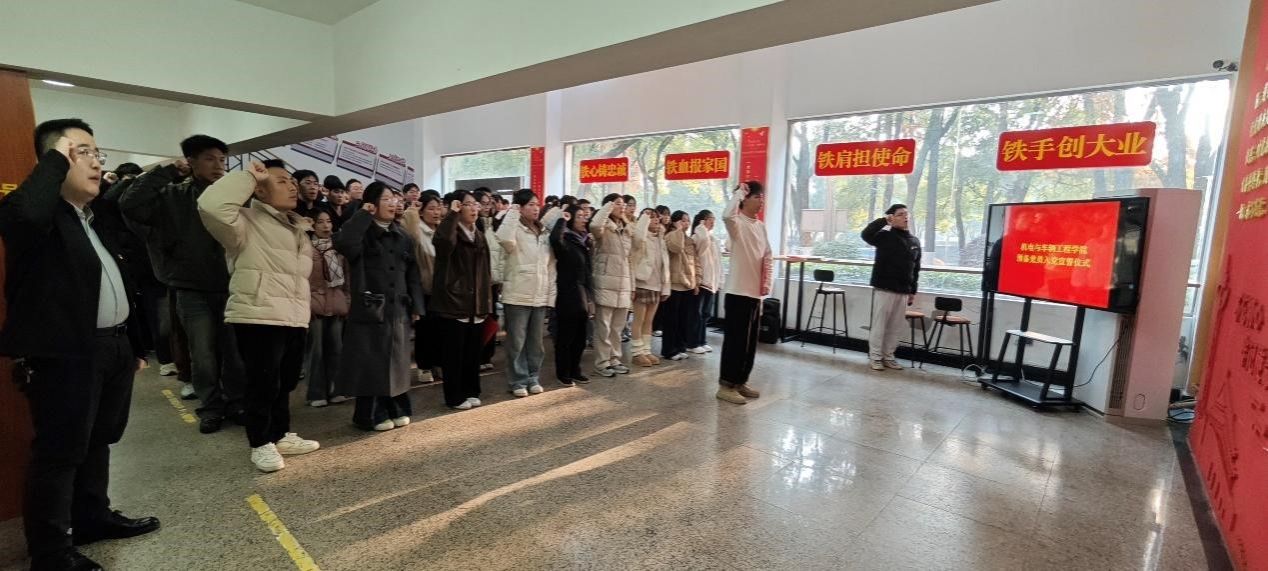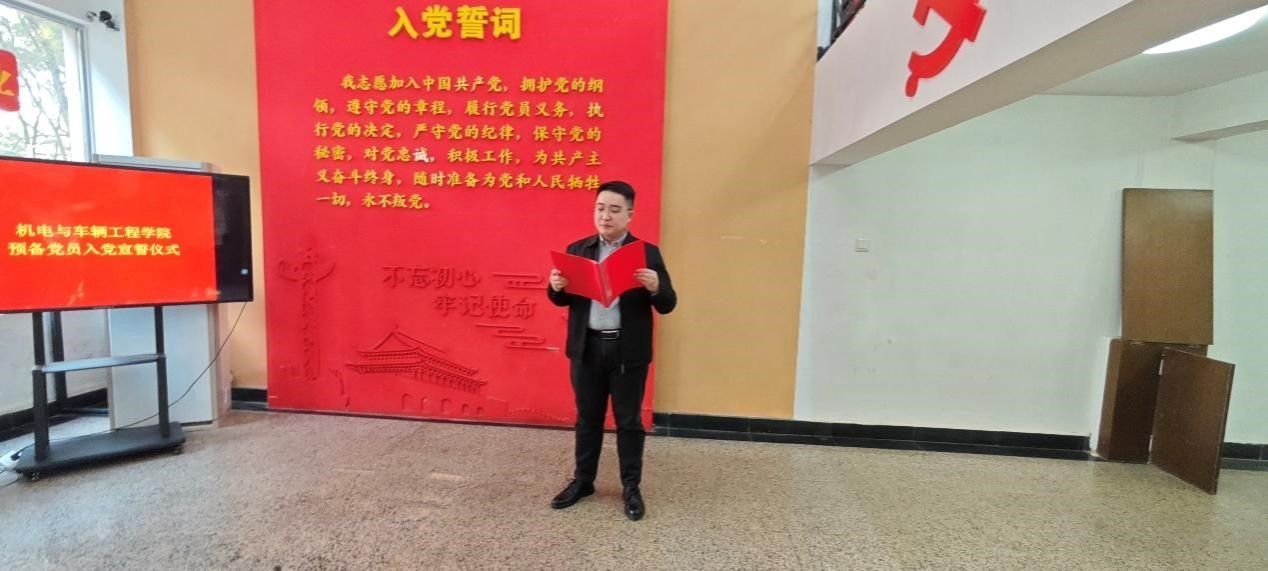 党委副书记陈铭老师和党委组织员罗青老师为预备党员们逐一佩戴党徽。党徽在阳光下熠熠生辉,宛如一盏明灯,照亮了他们前行的方向;更似一份无声的嘱托,提醒着他们时刻以党员的标准严格要求自己,践行党的使命。