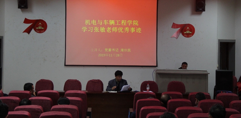 11月28日,党委书记周尔民在0638太阳集团报告厅向全体教师宣扬了“教书育人楷模”张敏同志的先进事迹,号召大家向张敏同志学习。