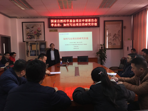12月10日,我院于13栋313会议室召开国家自然科学基金项目申请报告会,邀请李志农教授作“如何写出项目的研究价值”报告。