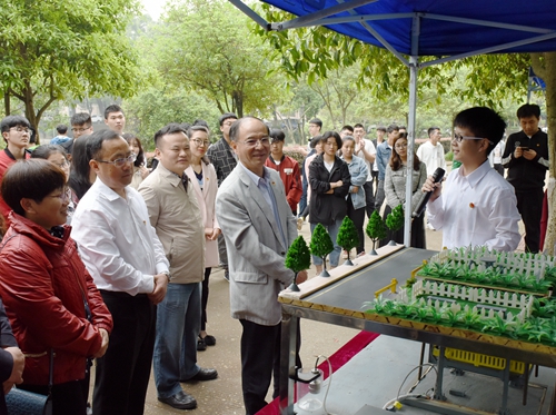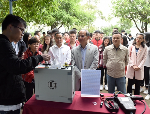 可生产出集各种颜色于一体的FDM彩色3D打印线材速造机,能代替人力钻入狭窄的车底进行检查的轨道车辆车底检测机器人,基于物联网技术的小型智能经济型地下立体停车库……一件件富有创造力的作品吸引万明驻足观看。他与学生亲切交流,详细询问作品的设计灵感、具体功能、市场前景等,充分肯定科技展的活动形式与效果。