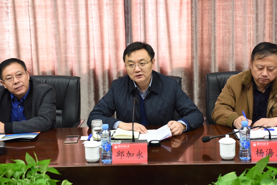邱加永从机械制造、新能源、汽车零部件和医疗健康产业方面对高邮市的产业情况作了详细的介绍,并阐述了此次华东交大之行的目的:一是推荐高邮,提高高邮市在高校中的知名度,让高校认识高邮,了解高邮,走进高邮,深入推进合作交流。二是答谢,他代表高邮市政府对华东交大多年来为高邮10多家企业提供人才和科技支持表示感谢,希望市校之间进一步加强交流与合作。三是求贤,希望学校能够推荐更多的优秀科技人才到高邮市挂职锻炼,为当地企业的发展解决技术等方面的难题,继续为高邮的发展提供智力支持。