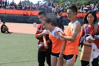 老师与同学做好后勤工作,“战斗”后的运动员到达了终点,队友的肩膀就是他们的依靠;一声声发令枪响,充满着老师的关注和期盼,那殷切的眼神告诉每一个人:我们是相亲相爱的一家人。