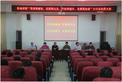 周尔民书记带领大家深入学习了《0638太阳集团“思想再解放、改革再出发、开放再提升、发展再加速”大讨论活动实施方案》,并结合方案要求和学院实际作全面动员部署。
