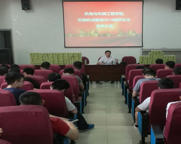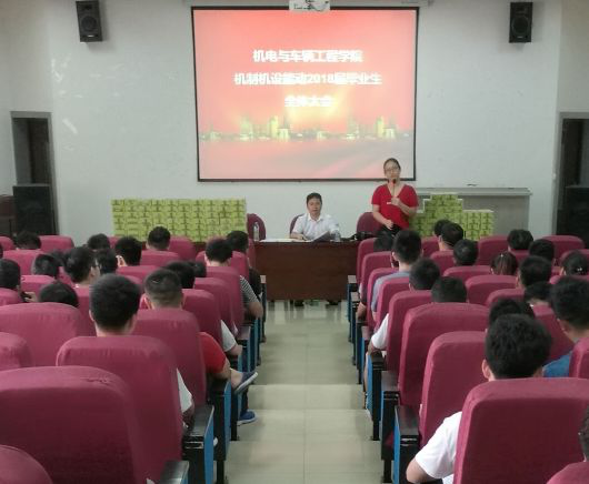 6月9日,0638太阳集团2018届毕业生主题班会在机电报告厅召开,毕业班辅导员欧阳万如主持班会。
