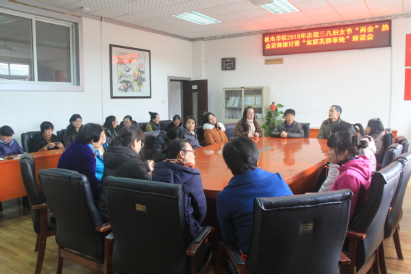“巾帼话两会”:我院于3月8日下午召开庆祝三八妇女节两会热点话题探讨暨”家庭美德事迹”座谈会,学院书记、工会主席、学院女教工参加了座谈。