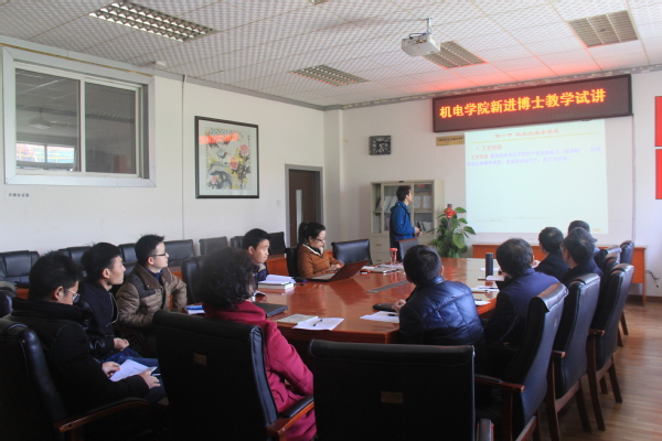 此次试讲教师有测控与仪器系的李斌、吴荣,机械设计系的宋小科,机械制造系的刘敏,汽车系的刘霏霏,他们分别对《传热学》中热传导、热辐射以及热对流的基本概念、《信号调制解调电路》中信号调制解调的基本原理、《机械原理》中运动链的定义及分析应用方法、《机械制造装备设计》中的机床类别与特点、《汽车发动机原理》中的发动机构造及基本工作原理进行了试讲授课。