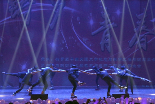 伴随着一首悠扬的吉他弹奏《晴天,一万次悲伤》,晚会正式拉开帷幕。双截棍上飞洒的烟火,台上飘渺的烟雾,极具特色的服饰,七彩的灯光,绚丽夺目。洋溢着青春气息的《美少女的good time》舞蹈点燃全场,轮滑爱好者们用多变的队形展现娴熟的团队技巧,一段相声以诙谐的语调让观众忍俊不禁,压轴出场的《国家》诗朗诵令人新潮澎湃。